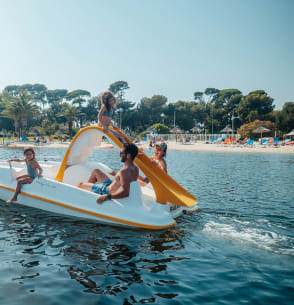 - explorez les eaux de la lagune à bord de nos bateaux pédaliers, parfaits pour une aventure en famille ou entre amis ;